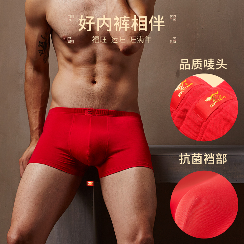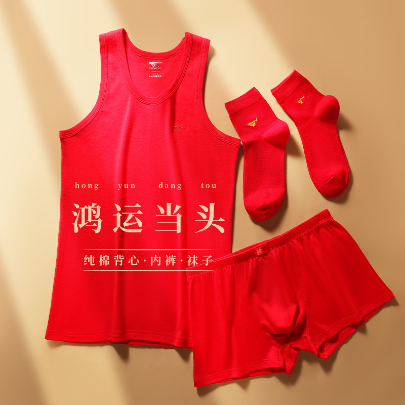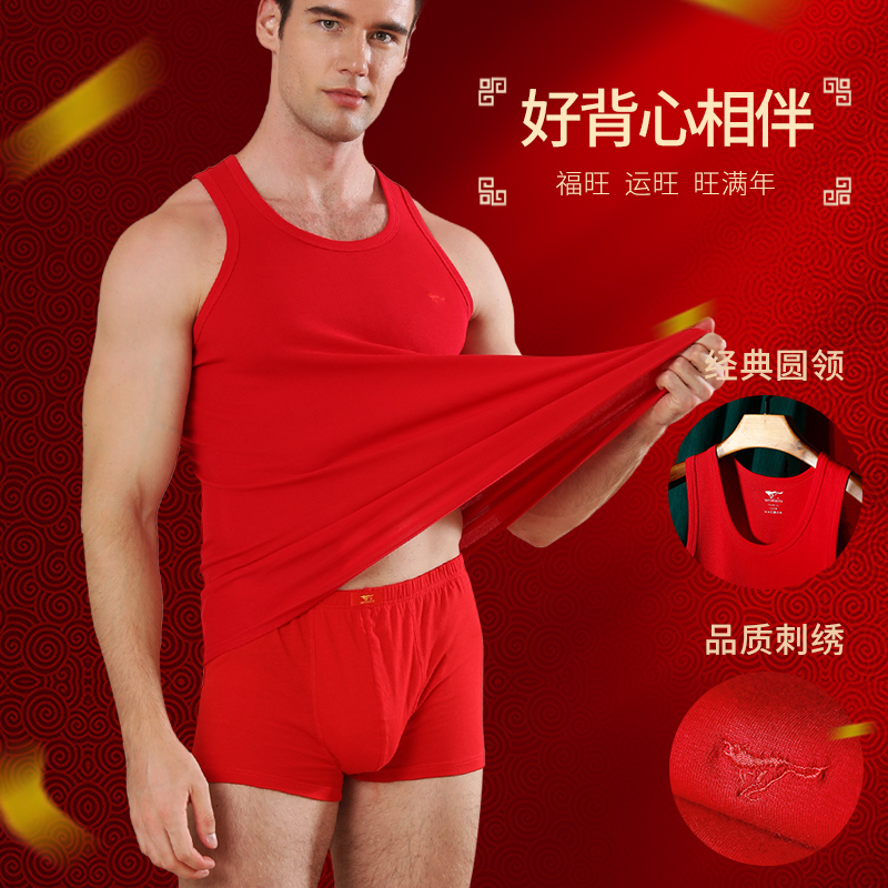 本命年属蛇年内衣全棉无袖 套装 吊带 结婚内裤 七匹狼大红色背心男士
