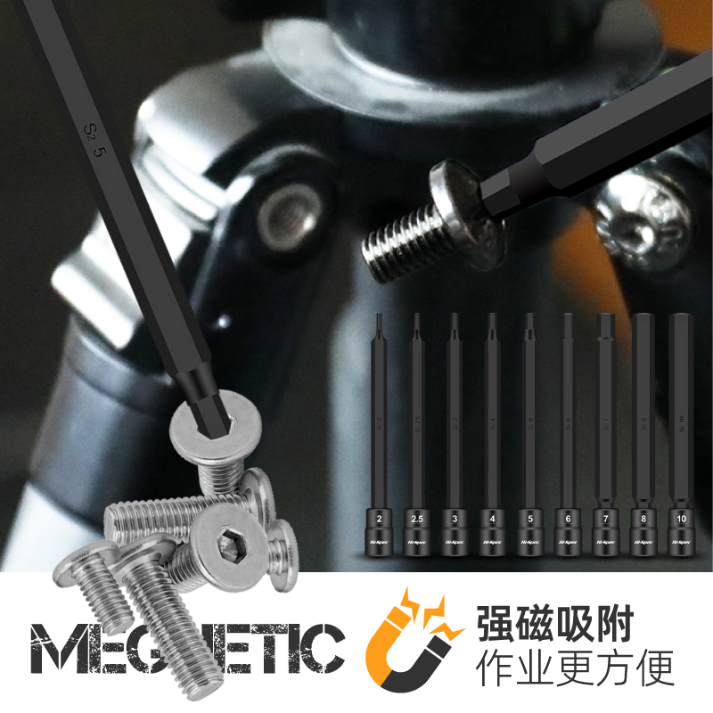 内六角套筒头套装 2电动内6角旋具套筒批头扳手 组合螺丝刀S2加长1