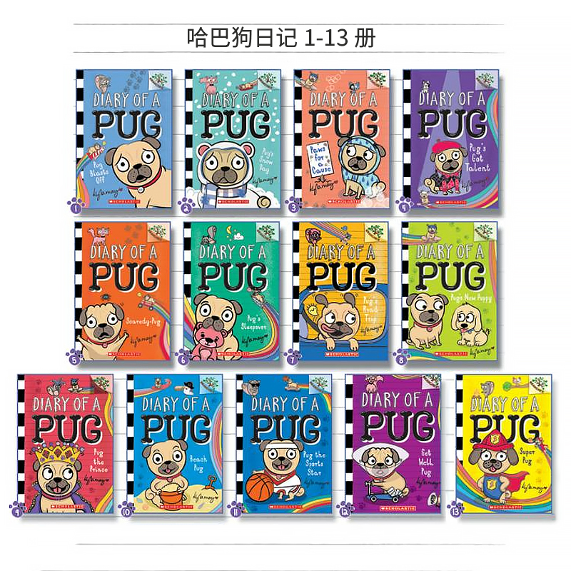 学乐哈巴狗日记13册Diary Pug Scholastic学乐大树儿童桥梁章节狗狗日常冒险桥梁书 英文原版 狗狗幽默搞笑桥梁书