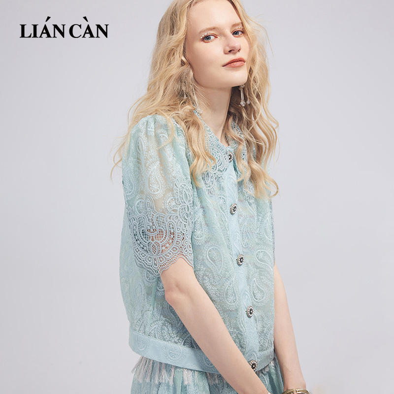 外套 浪漫波西米亚风蕾丝花边翻领蕾丝短袖 莲灿2023秋季 新商场同款