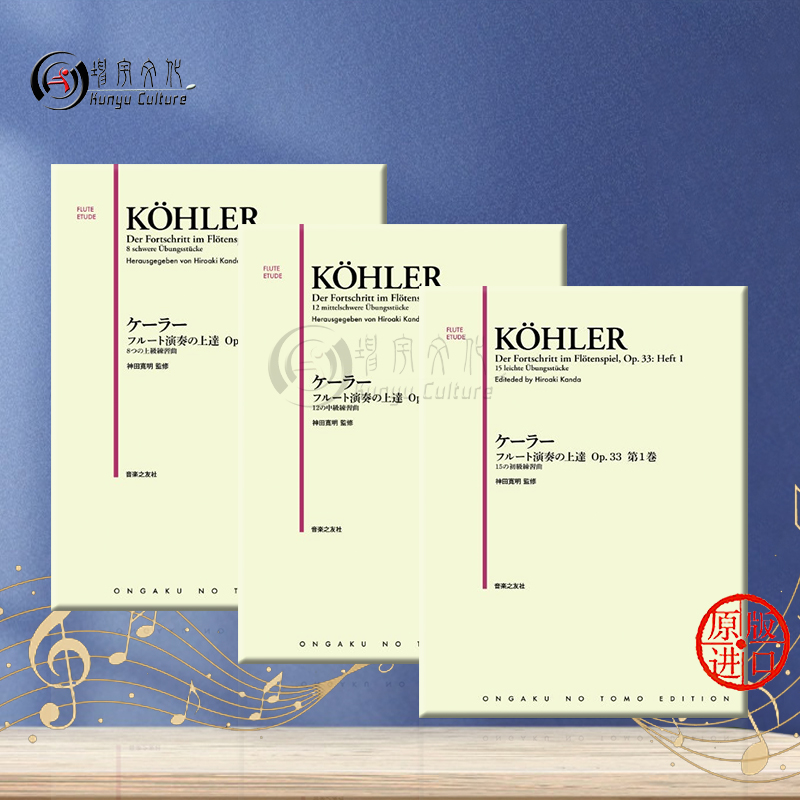 17首每日手指练习 Piano flute 乐谱书 长笛技巧 奏鸣曲 Kohler op33 附钢琴伴奏 for 柯勒 全套共一至三册 Sonate 原版