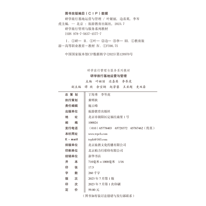 研学旅行基地运营与管理9787563745777叶娅丽主编23年版 社 研学旅行管理与服务系列教材旅游教育出版