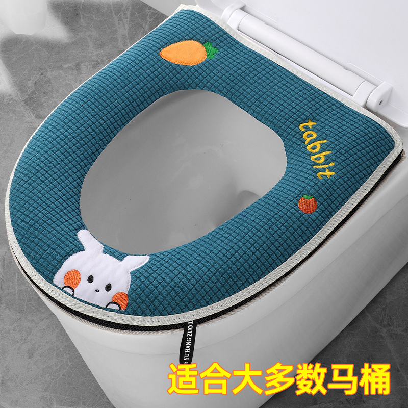 马桶坐垫家用防水耐脏可爱拉链款 通用可水洗马桶垫子 厚坐便套四季
