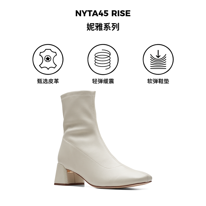 Clarks其乐NYTA45Rise女鞋 秋冬瘦瘦靴显瘦小羊皮粗跟短靴