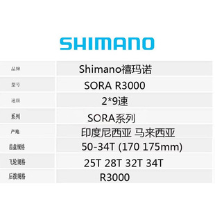 手变版 SHIMANO禧玛诺SORA R3000折叠车公路车9速变速大套件指拨版