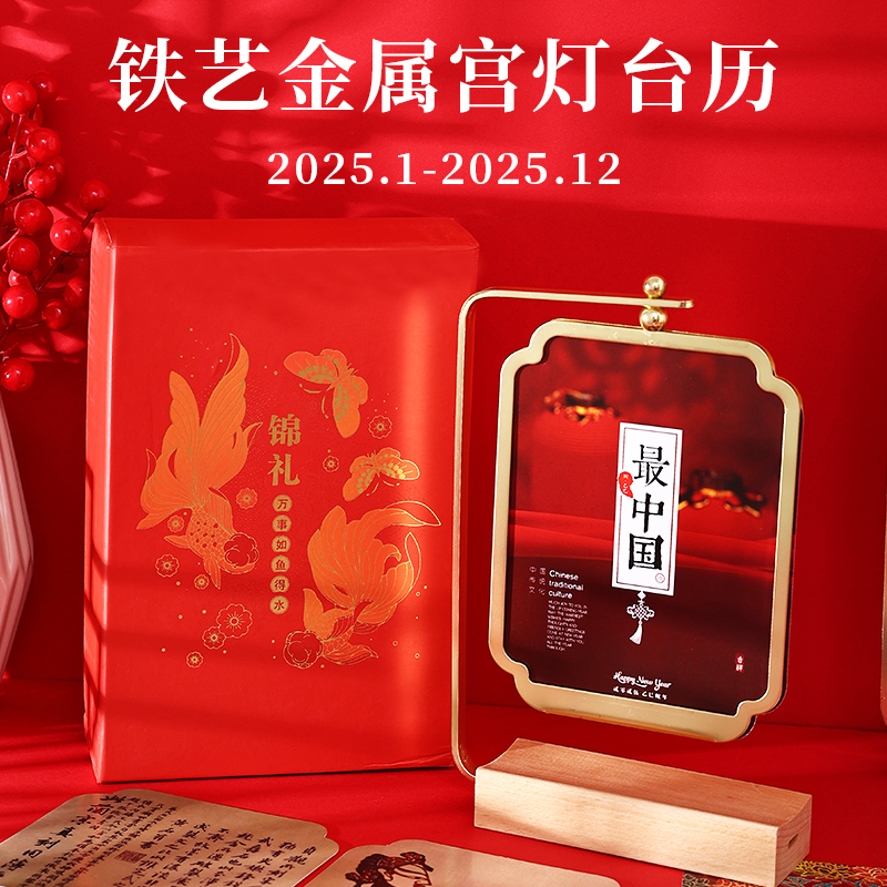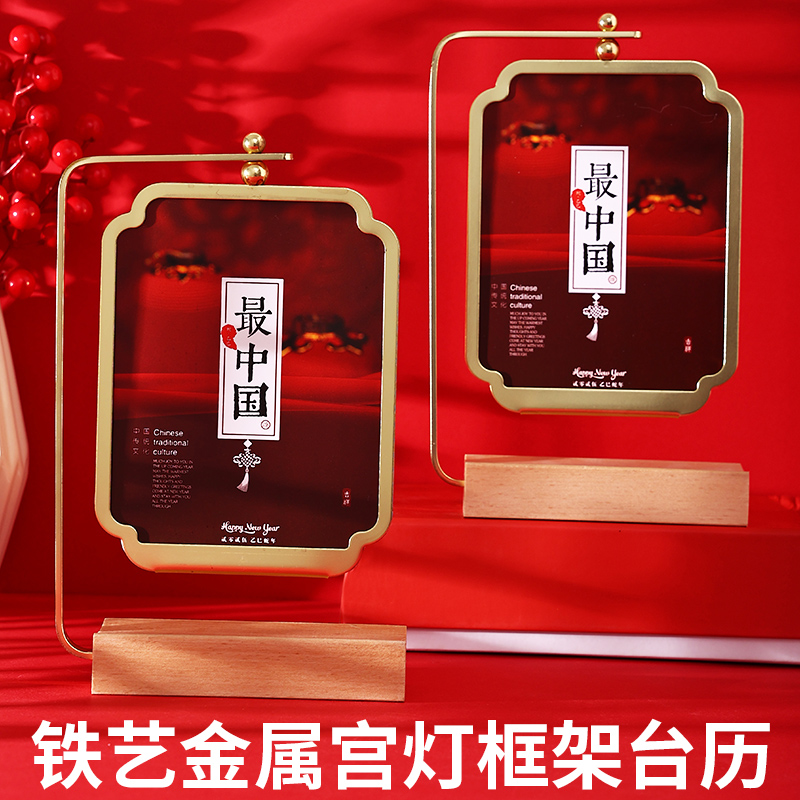 2026新款 马年企业定制日历创意办公室记事本桌面摆件铁艺金属宫灯