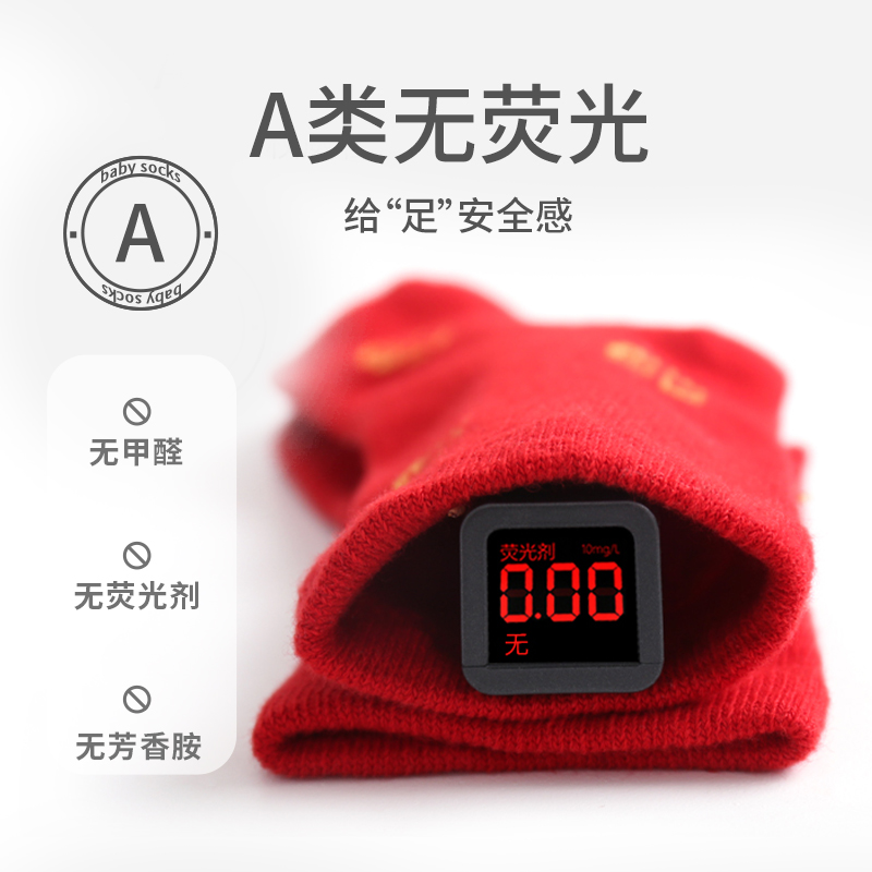 婴儿袜子冬季 纯棉红色宝宝满月新生婴儿儿0到3个月中筒不勒一岁