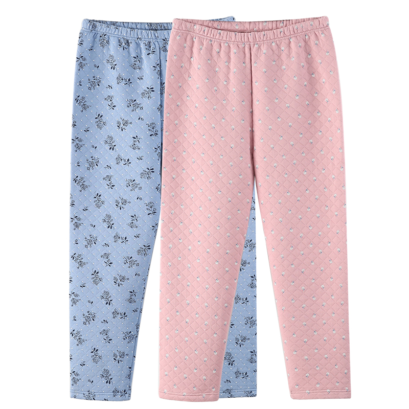 散口内穿线裤 高腰加厚三层夹棉毛裤 冬 女纯棉老人棉裤 中老年保暖裤