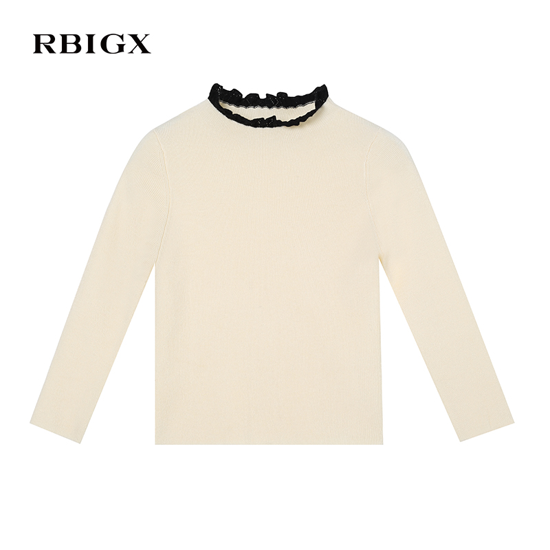 毛衫 RBIGX瑞比克童装 女童设计感撞色花边领针织衫 新款 秋季