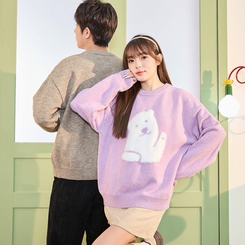拼格情侣外套 简约连帽毛衣宽松慵懒风针织衫 Achock官方店