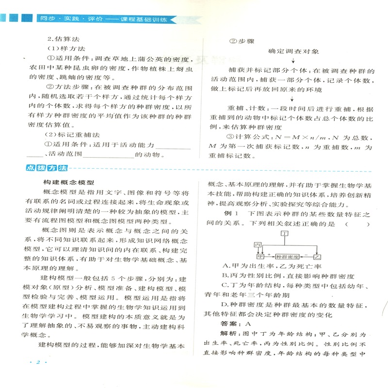 2025新版 生物学高中选择性必修二2生物与环境同步练习册基础训练含答案同步试卷 高中基础训练同步试卷评价课程基础训练人教版