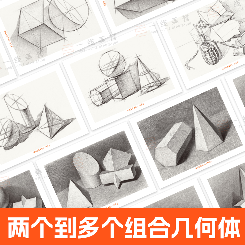 几何体组合临摹卡素描几何体素描单体组合静物临摹卡从结构步骤到完整临摹培训班零基础入门美术生绘画教材教程素描临摹卡