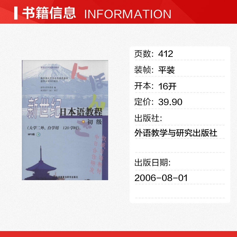 初级外研社日本语大家 MP3版 新世纪日本语教程 日本语初级零基础入门自学标准日语日语教材教程标准日本语 新华正版