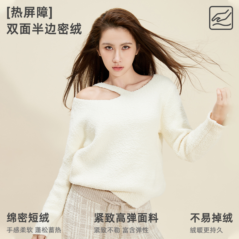 半边绒家居套装 女可外穿保暖睡衣珊瑚加绒加厚秋冬设计感上衣长裤