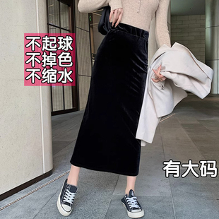 pu皮包臀裙中长款 芬展皮裙半身裙秋冬新品 高腰显瘦开叉一步裙大码