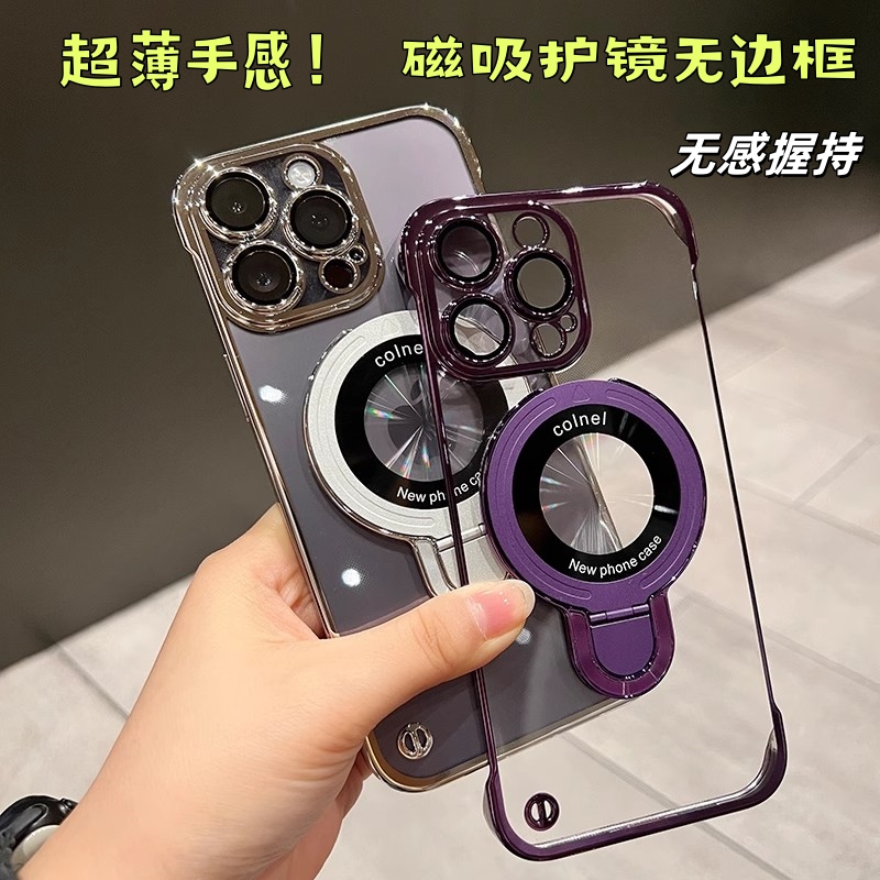 磁吸支架电镀无边框适用iPhone17promax手机壳苹果14新款 硬壳 带镜头膜13透明12简约11超薄pro高级感plus爆款