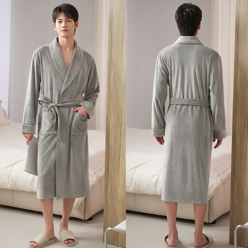 长袖 冬款 珊瑚绒睡衣加绒加厚浴袍家居服 秋冬季 轩靓海岛绒睡袍男士