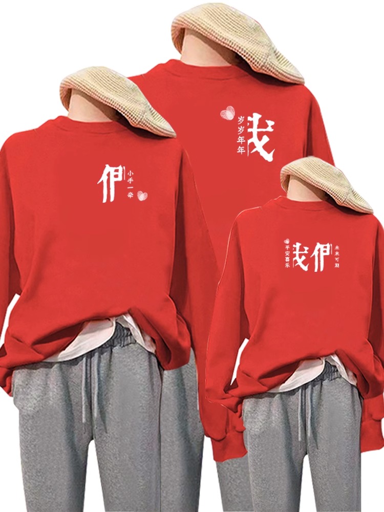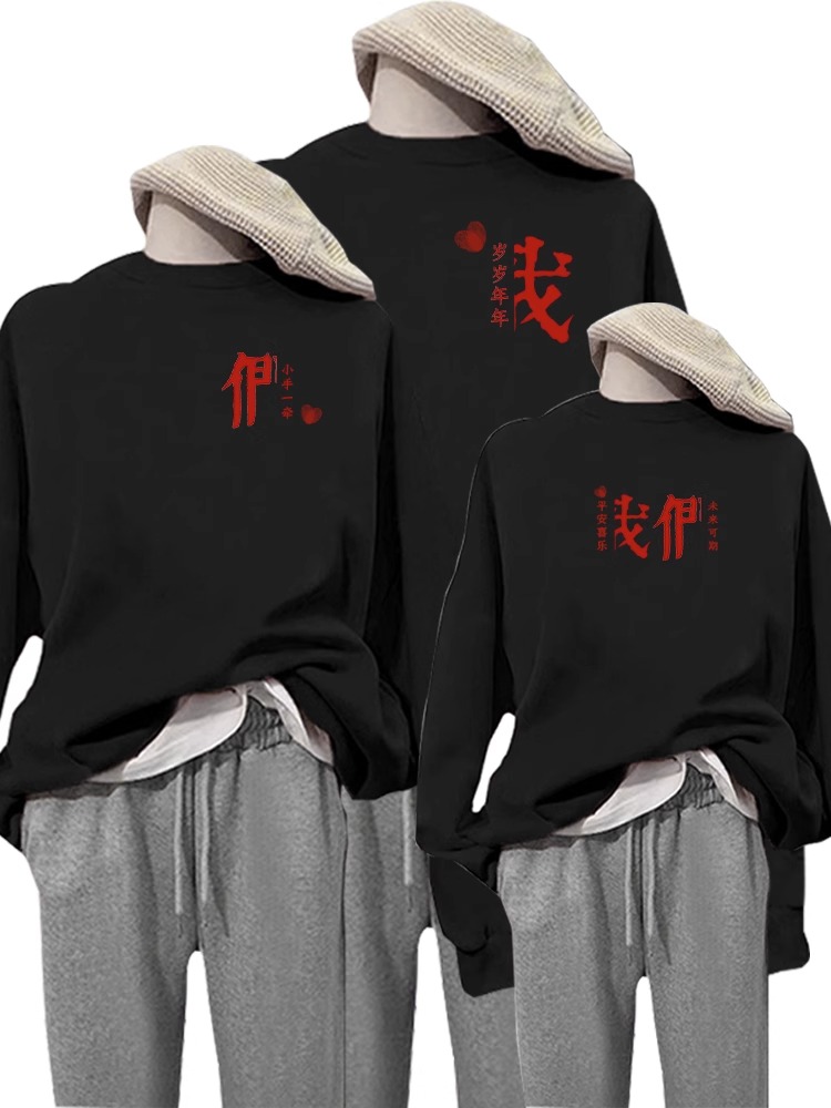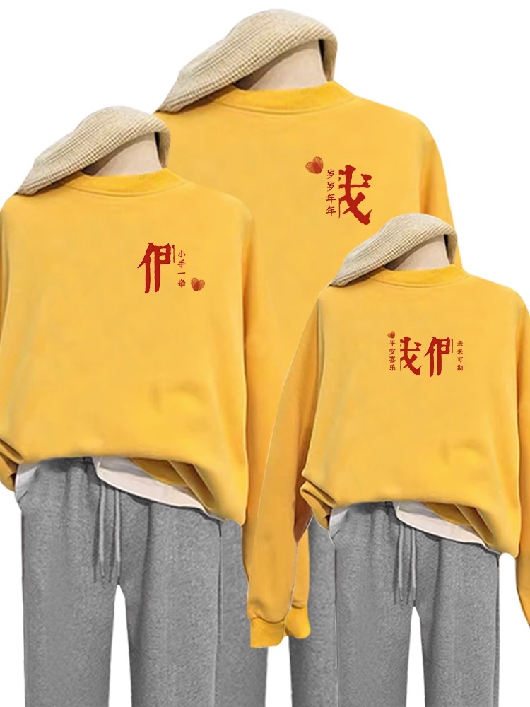 四口母女洋气春秋季 亲子装 潮母子装 卫衣一家三口2025新款 家庭 秋装