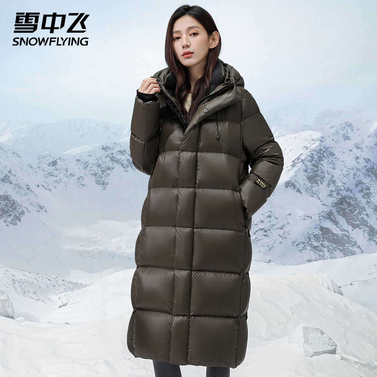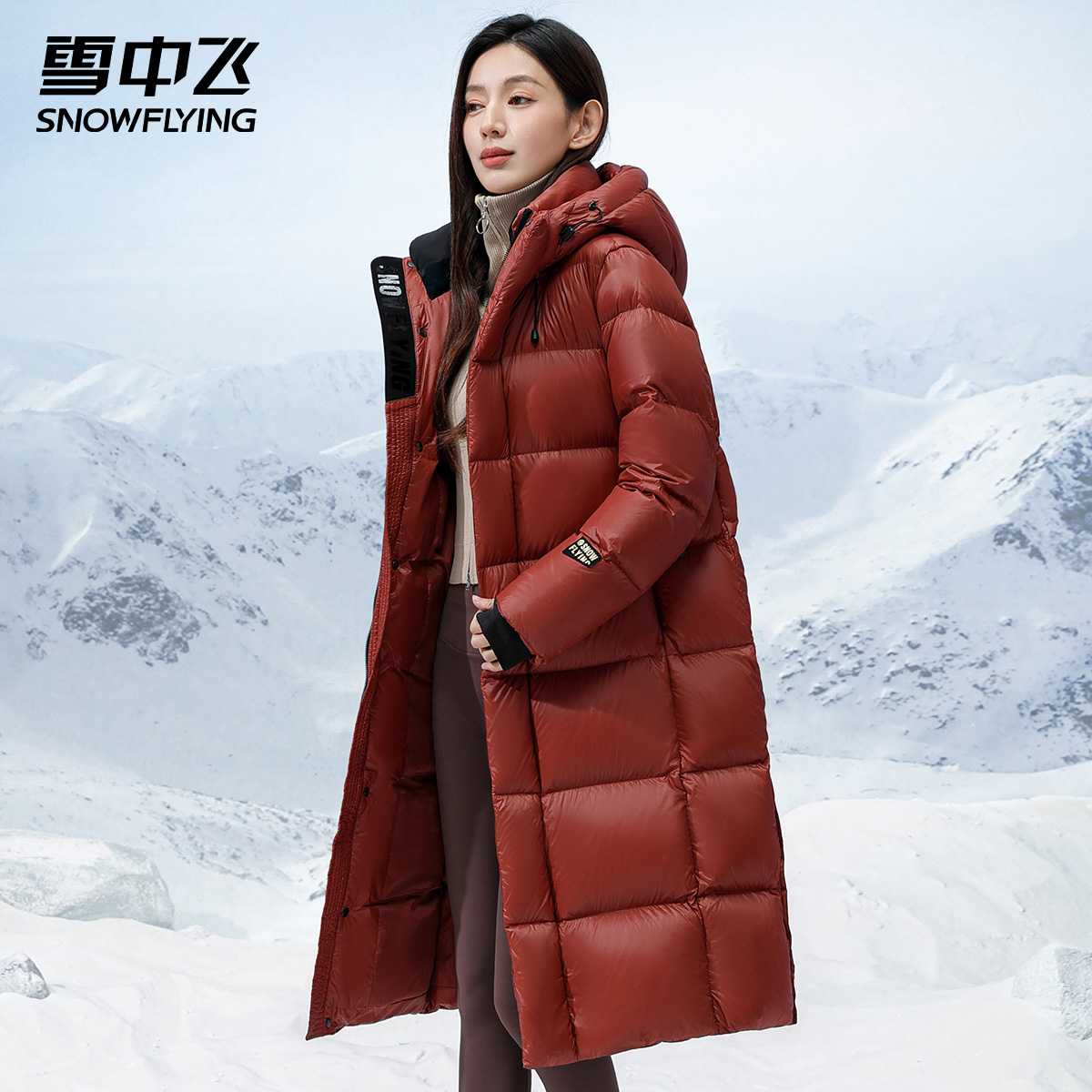 雪中飞2025黑色金标加厚鹅绒羽绒服女中长款 连帽休闲情侣外套冬季