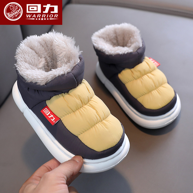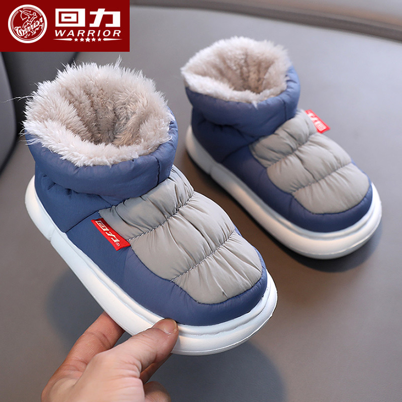 男孩加绒保暖棉鞋 回力男童棉拖鞋 包跟厚底学生宿舍室内儿童家居鞋