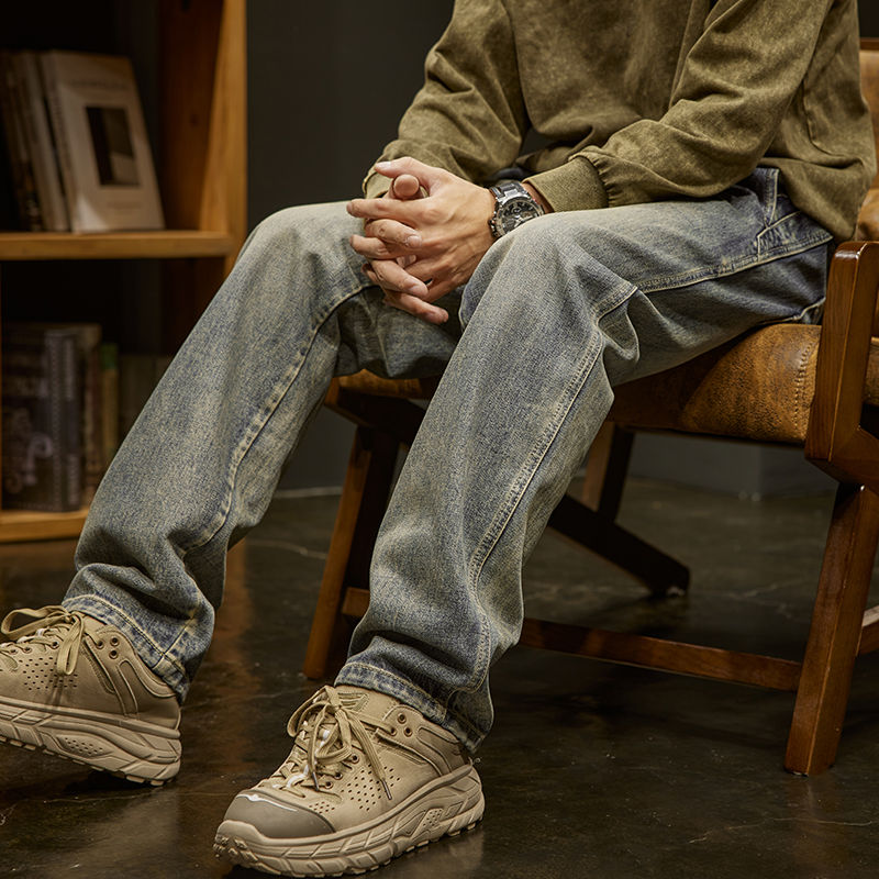 男士 高街直筒男裤 秋季 美式 潮牌宽松垂感阔腿裤 重磅复古水洗牛仔裤