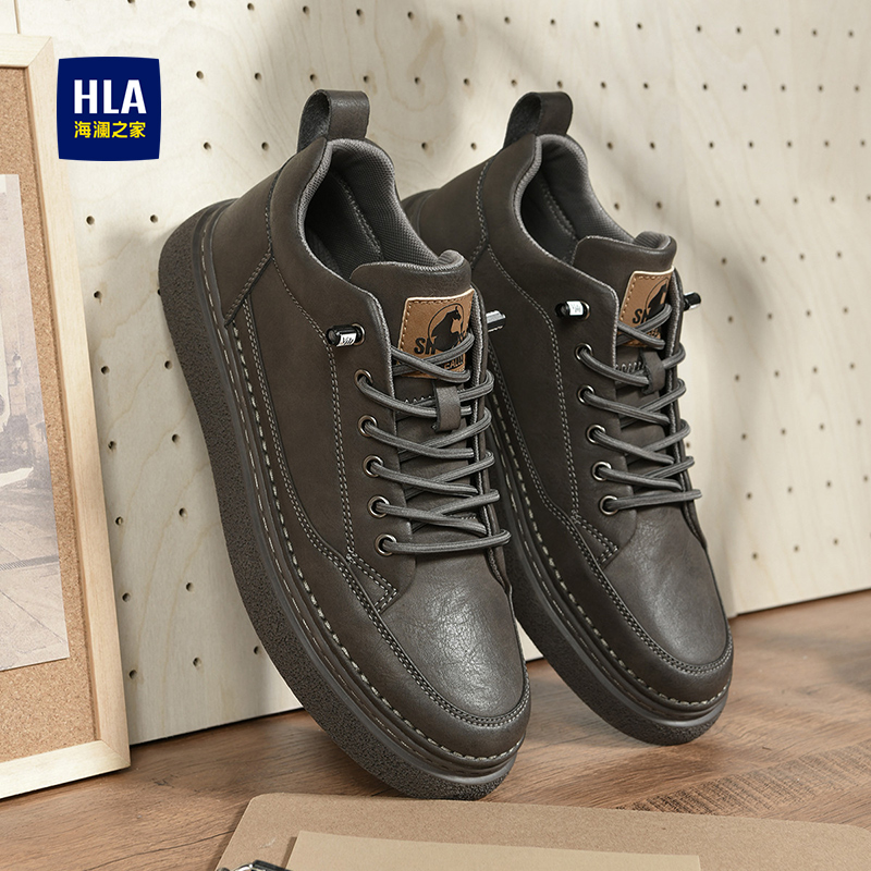 靴子 真皮防水厚底增高工装 森马马丁靴男秋季 高帮百搭休闲白色板鞋