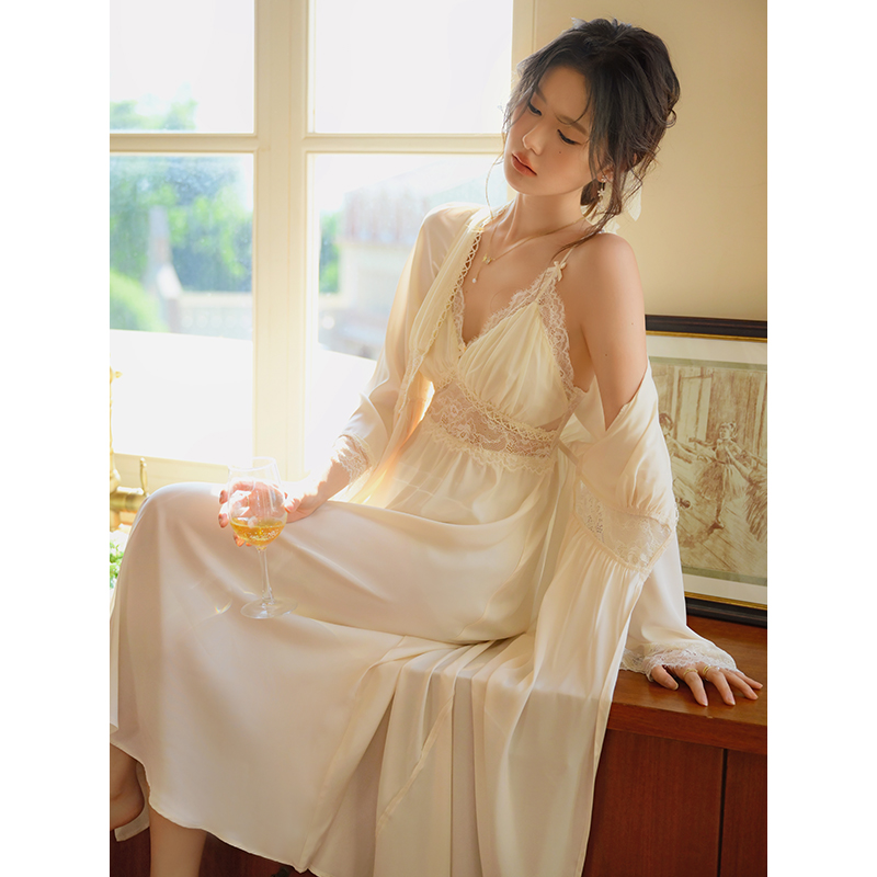 甜美可外穿家居服套装 猫人带胸垫睡衣女款 2025新款 纯棉长袖 春秋季