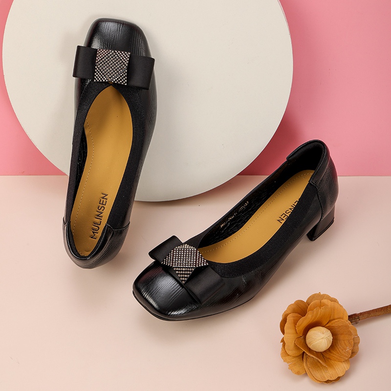 仙女风瓢鞋 秋季 浅口百搭中跟奶奶鞋 大码 真皮单鞋 女鞋 粗跟2025新款