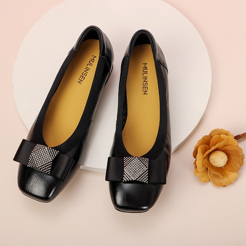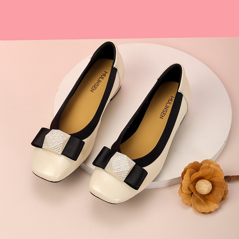 新款 女鞋 女士温柔蝴蝶结浅口单鞋 淑女平底单鞋 法式 热风2025年夏季