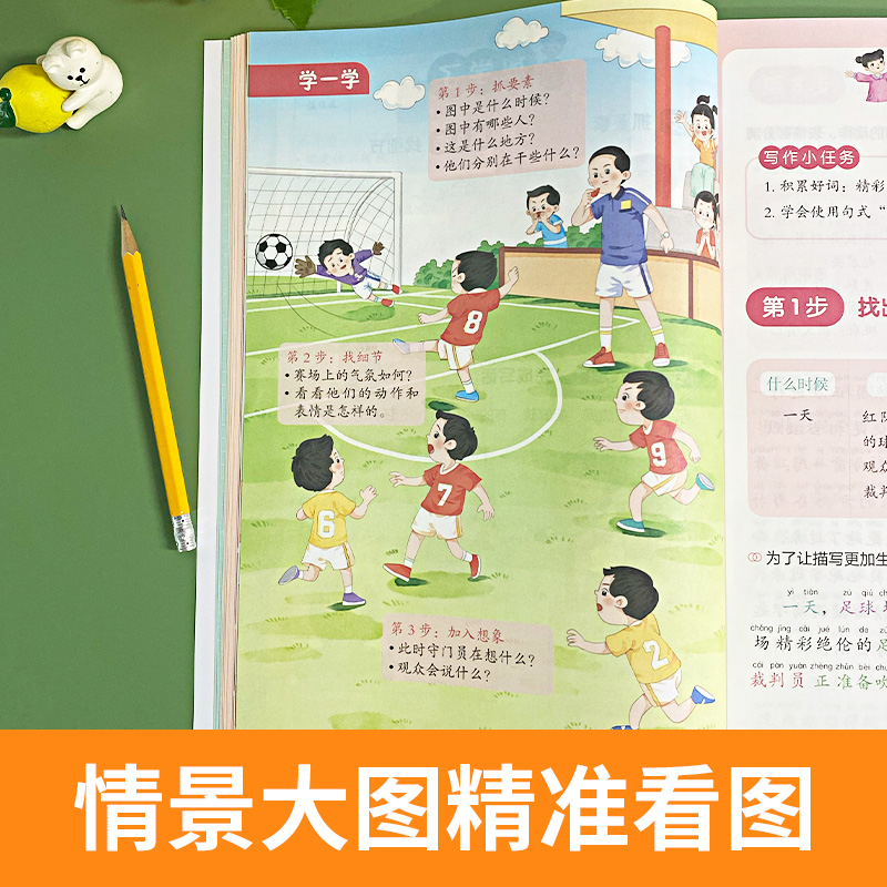 一学一练常考写作素材大全 174幅情景图图解要素锻炼孩子观察思维想象力 情景图解法看图写话就三步 小学一二年级看图说话专项训练