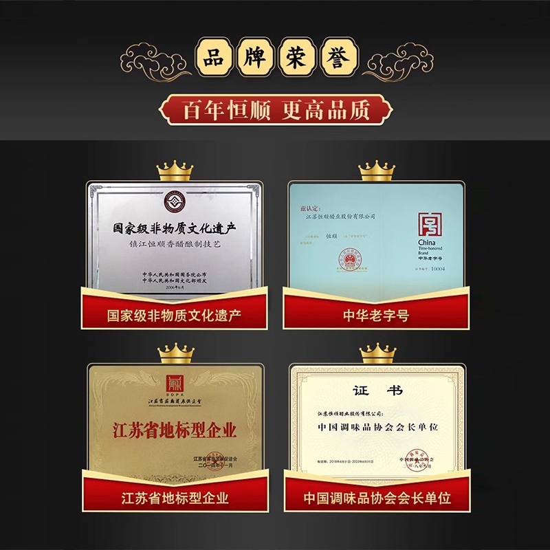 恒顺北固山镇江香醋500ml瓶装 醋尝鲜 家用凉拌厨房调味料食用包装
