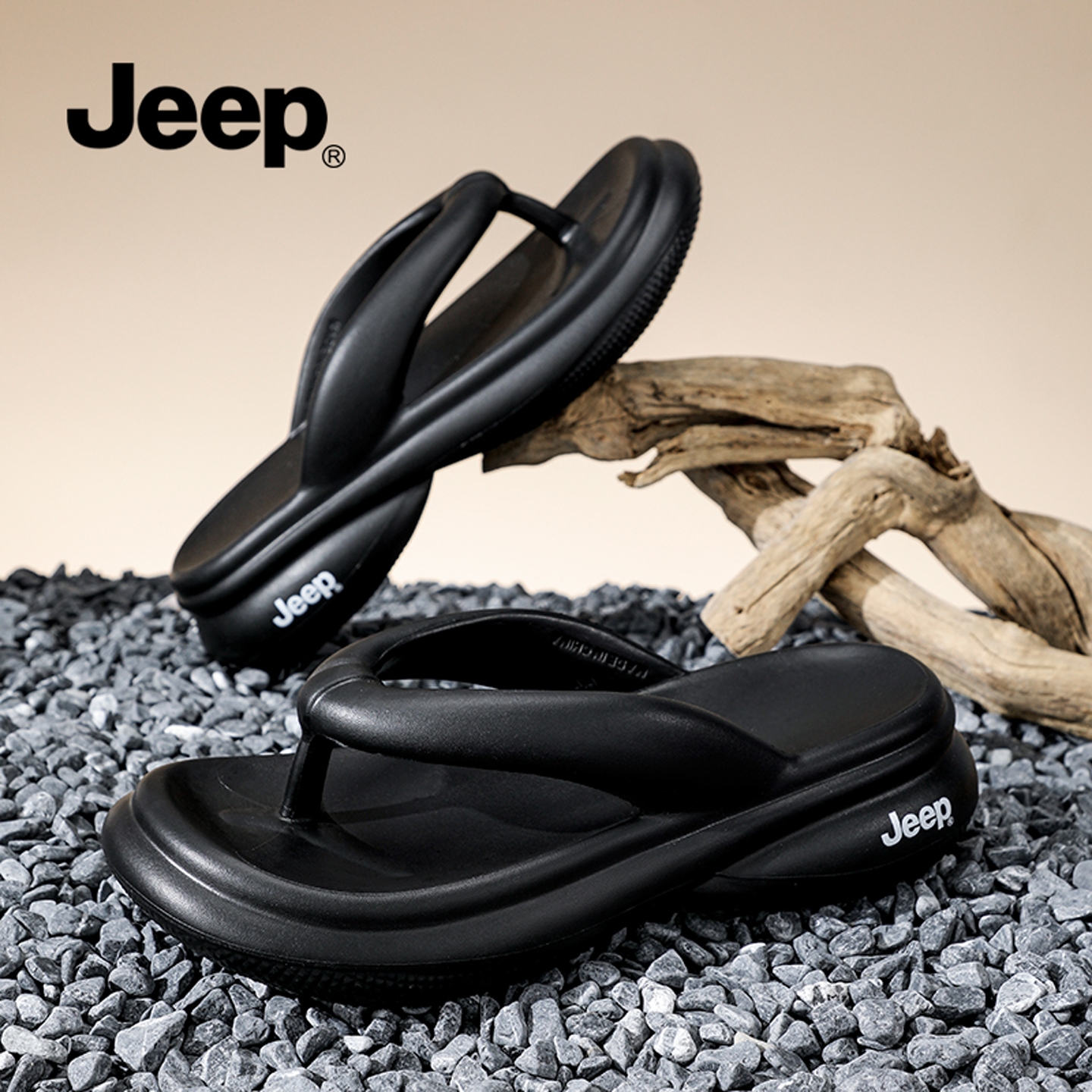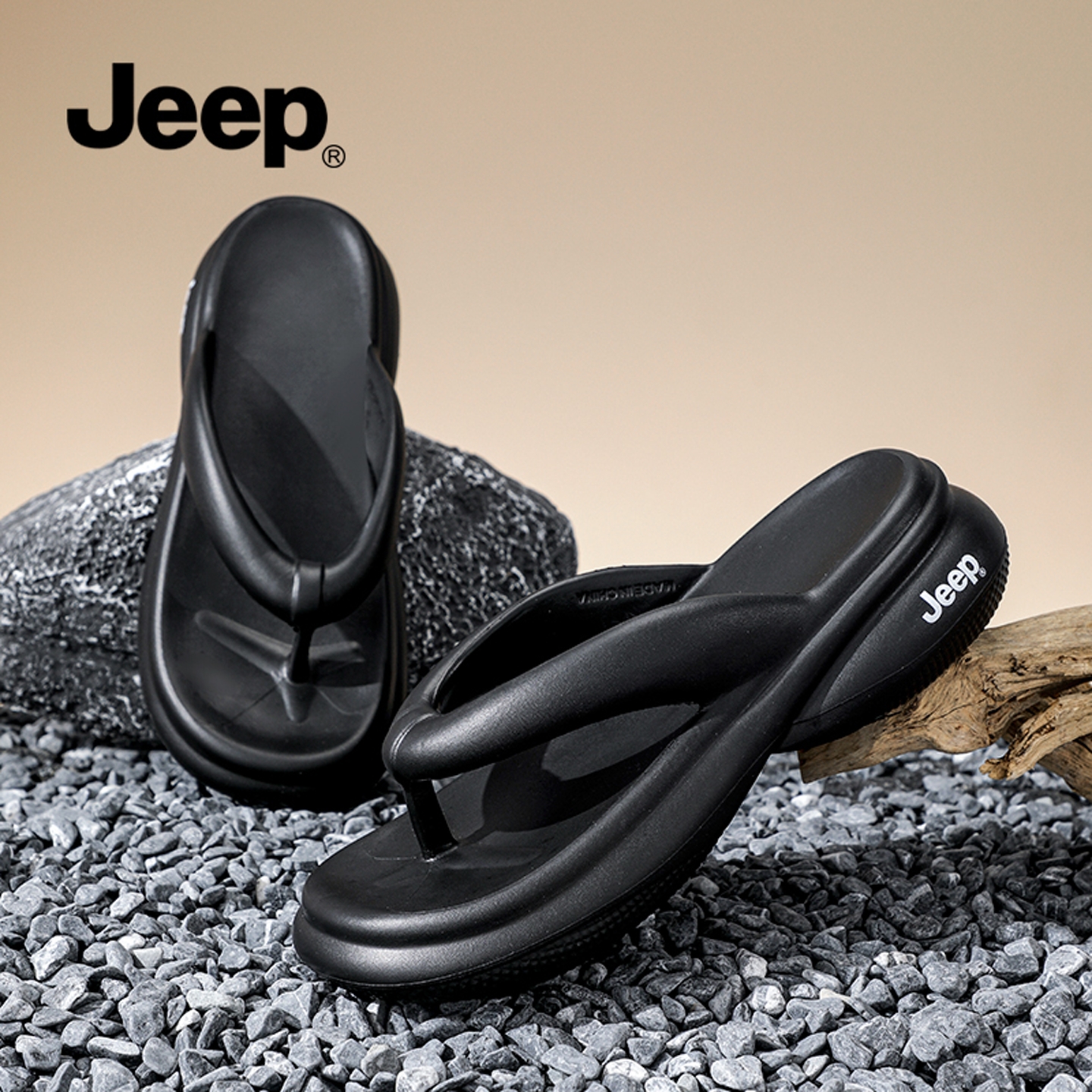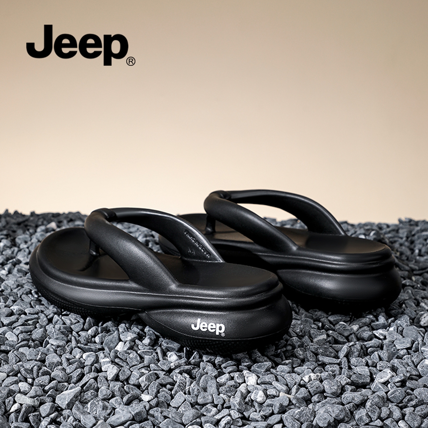 女款 黑色沙滩凉拖鞋 厚底增高夹脚人字拖 女夏外穿2025新款 JEEP拖鞋