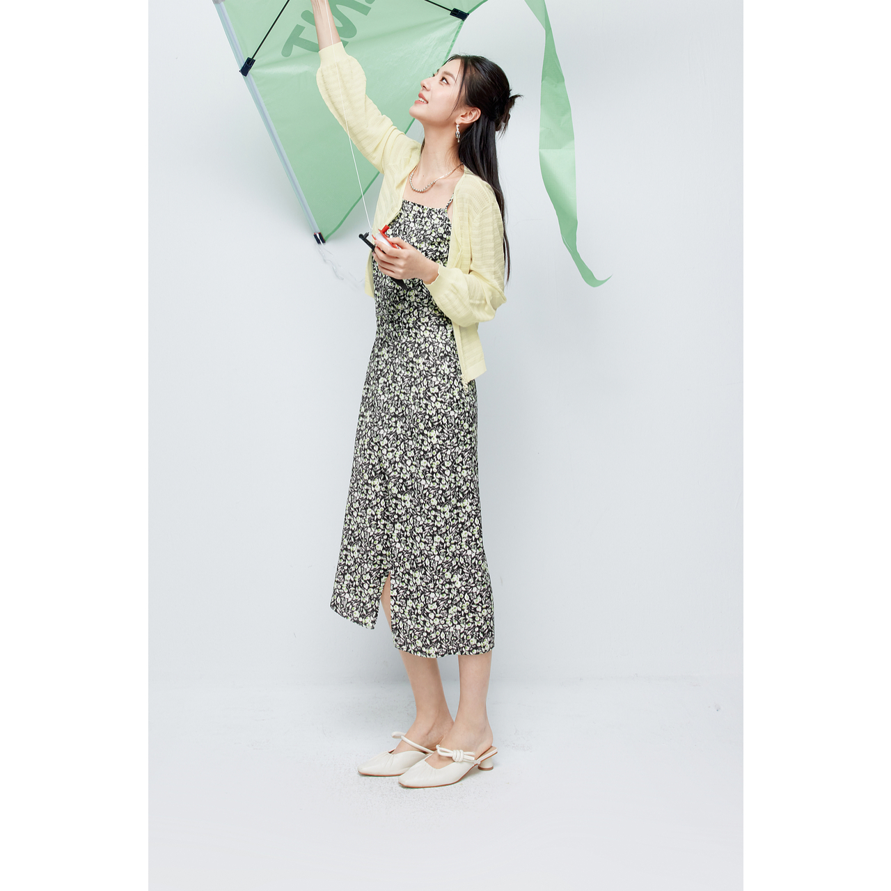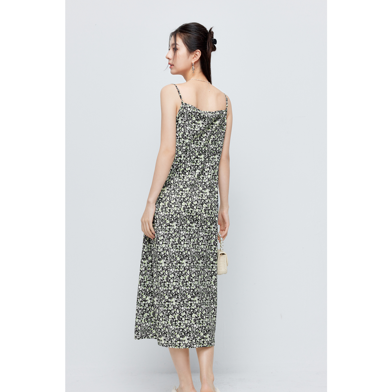 3F4290701 诗凡黎薄荷曼波碎花吊带连衣裙2024夏新款 商场同款