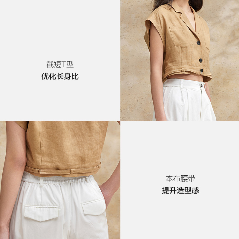 商场同款 短外套2024女夏季 播无袖 薄上衣BDR2WD0718 法国雨露麻