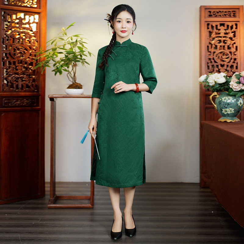 日常可穿真丝桑蚕丝妈妈中长款 华族经典 高考送考旗袍高贵气质时尚