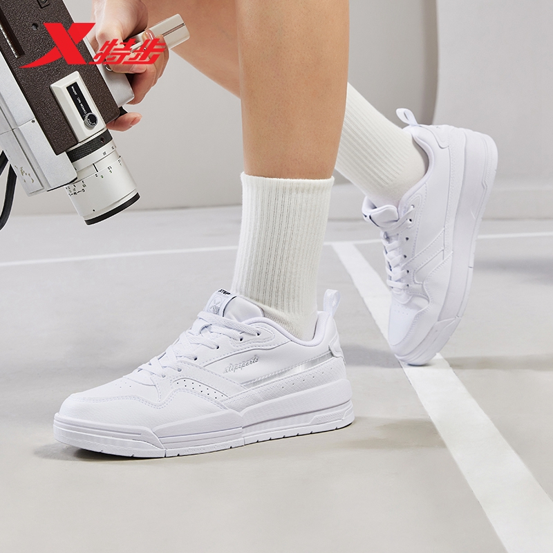 新款 秋季 女士休闲鞋 学生潮流滑板鞋 女 特步女鞋 轻便耐磨小白鞋 板鞋