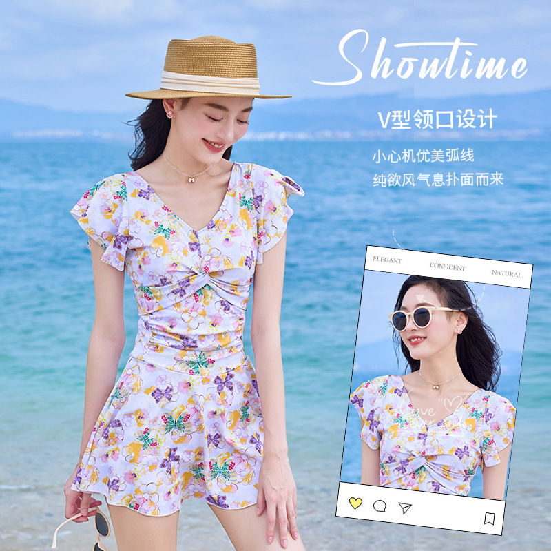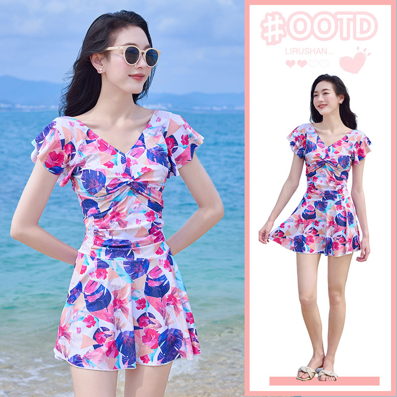 游泳衣女2025新款 高级感夏 连体海边微胖女孩遮肉显瘦保守小胸裙式