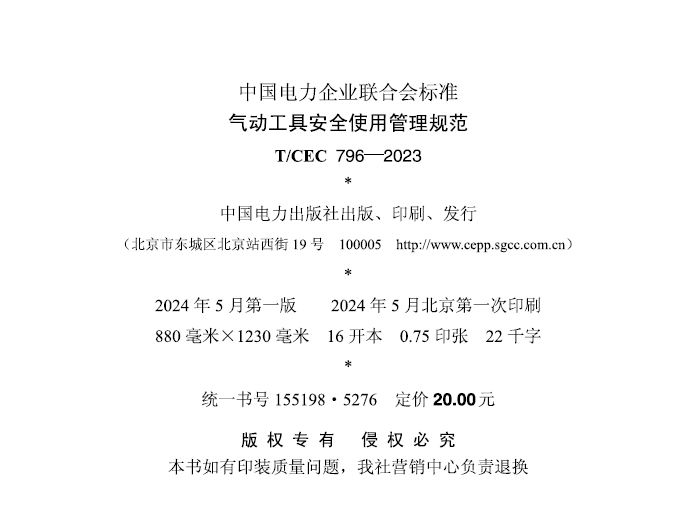 796—2023 T/CEC 气动工具安全使用管理规范 按需印刷