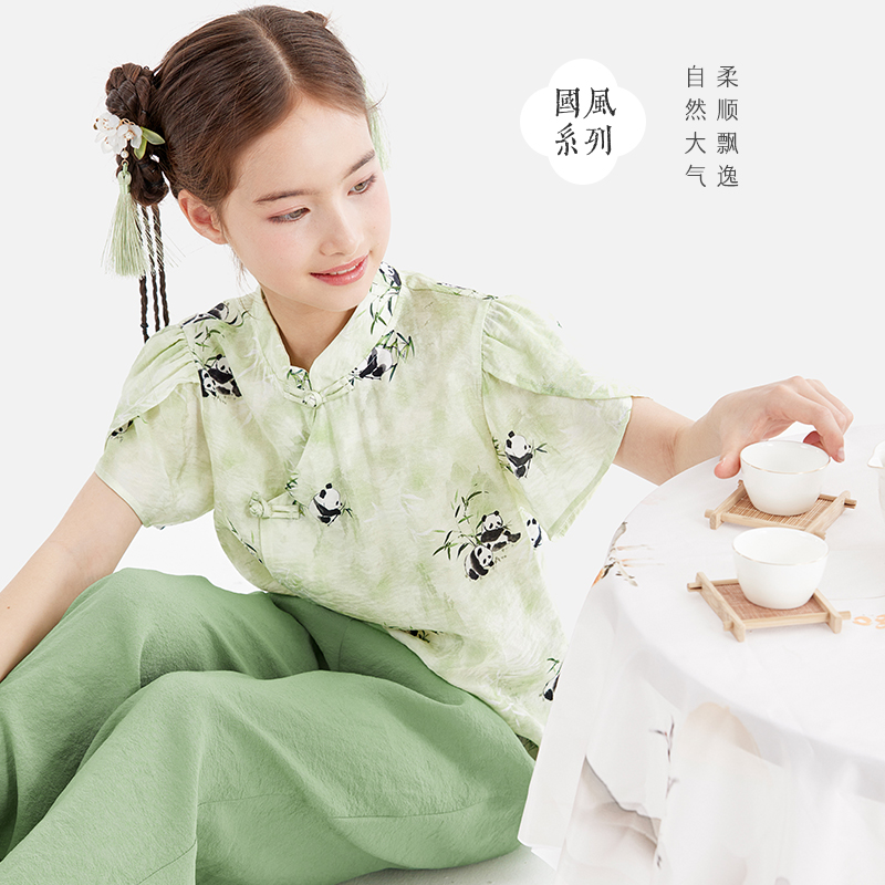 子2025新款 连衣裙洋气国风旗袍裙子套装 夏季 短袖 儿童新中式 女童裤