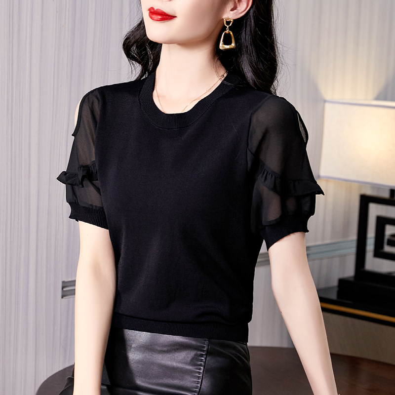 内搭上衣中袖 大码 毛衣女短袖 针织打底衫 t恤胖mm春秋 半高领五分袖