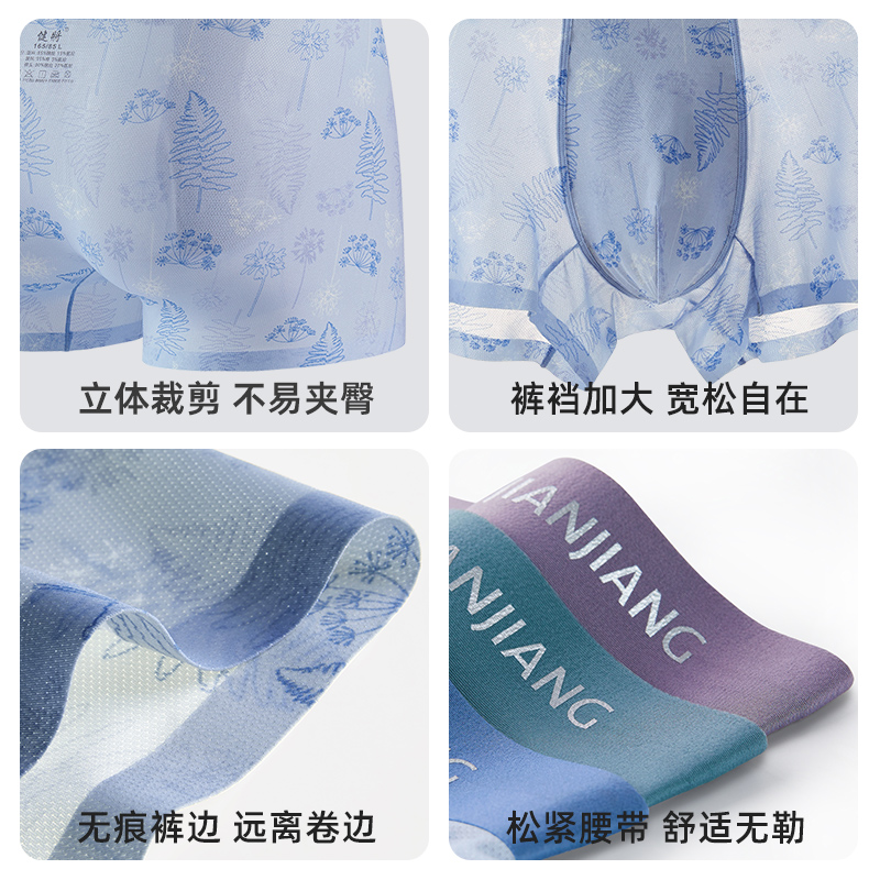 无痕透气男生运动平角底裤 纯棉裆四角裤 衩青少年 内裤 健将冰丝男士