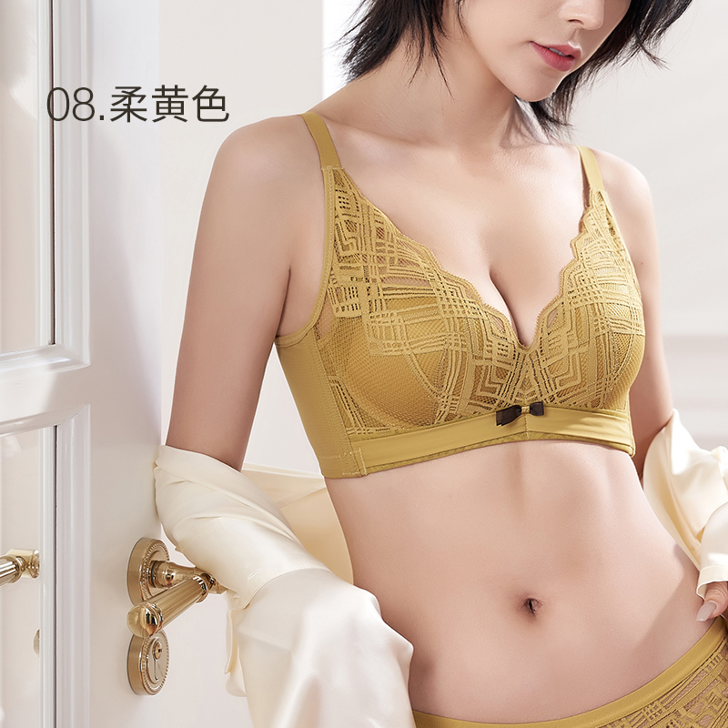 好奇蜜斯小胸聚拢内衣女薄显大无钢圈蕾丝文胸罩套装 防下垂夏 法式