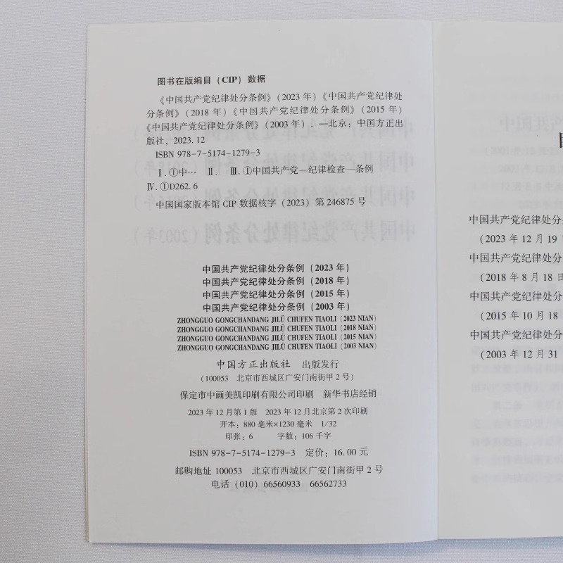 新修订版 四合一 2015年 2024新版 党内法规条例单行本 正版 2023年 社 中国共产党纪律处分条例 2018年 中国方正出版 2003年