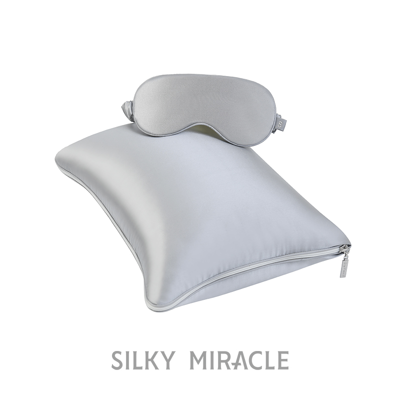 SILKY MIRACLE可折叠真丝枕头眼罩套组桑蚕丝睡眠旅行抱枕用品