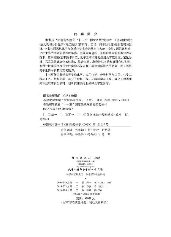 第三版 易明 理学9787030656568科学出版 书 社书籍KX 专科教材 基础化学实验 本科 邓卫华教材