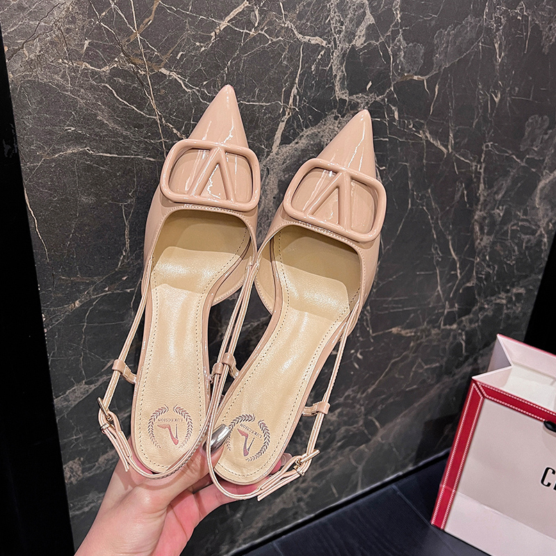 尖头绝美包头凉鞋 女华伦V扣法式 女 尖头细跟气质高跟鞋 路客森时尚