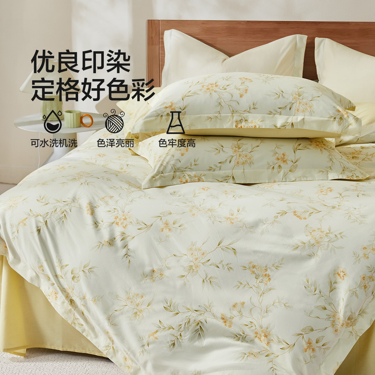 水星家纺纯棉全棉四件套家用套件纯棉100花卉印花被套床单床品