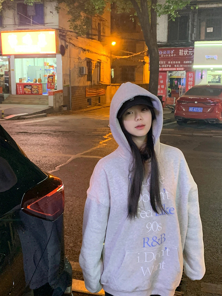 国潮牌美式 oversize潮牌设计感连帽宽松外套 灰色加绒卫衣女秋冬款