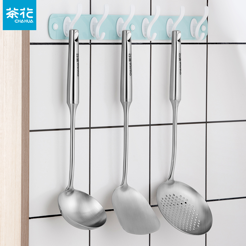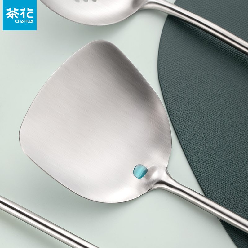 茶花锅铲厨房炒菜铲子勺套装 家用厨具勺子铁锅铲长柄 不锈钢304