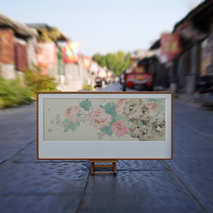 壁挂画 饰画水墨卧室床头书房横版 牡丹国画小众艺术高级感新中式 装